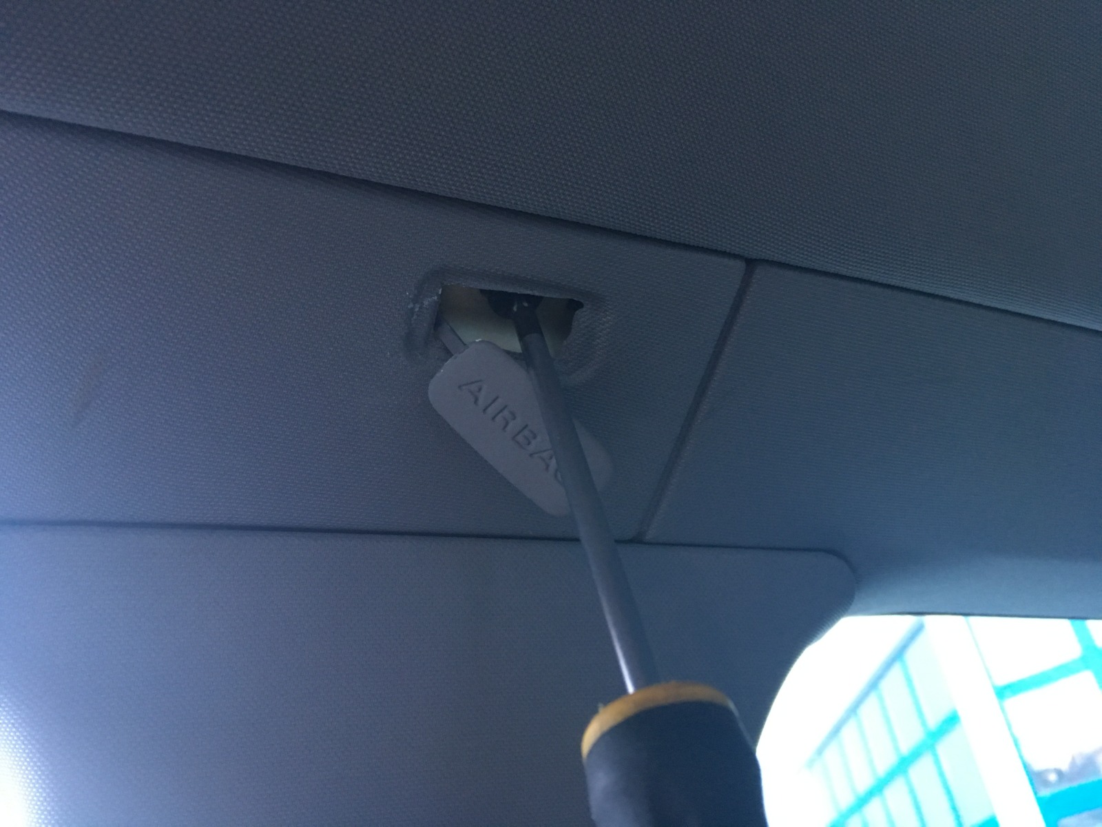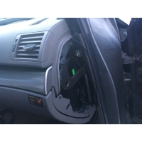 - Løsne a-stople-dekselet på venstre førerside om du skal montere ny radio med blåntann-mikrofon. Bildet viser her demontering av a-stopledekselet på passasjersiden. Airbag-deksel må løsnes med et lite flattjern eller lignende.