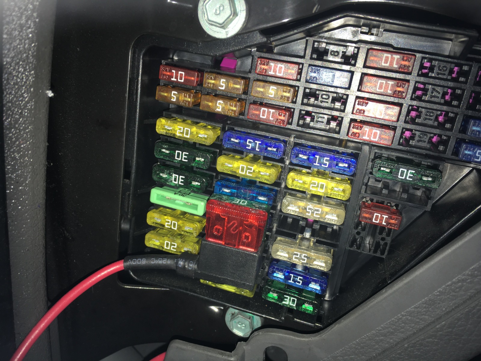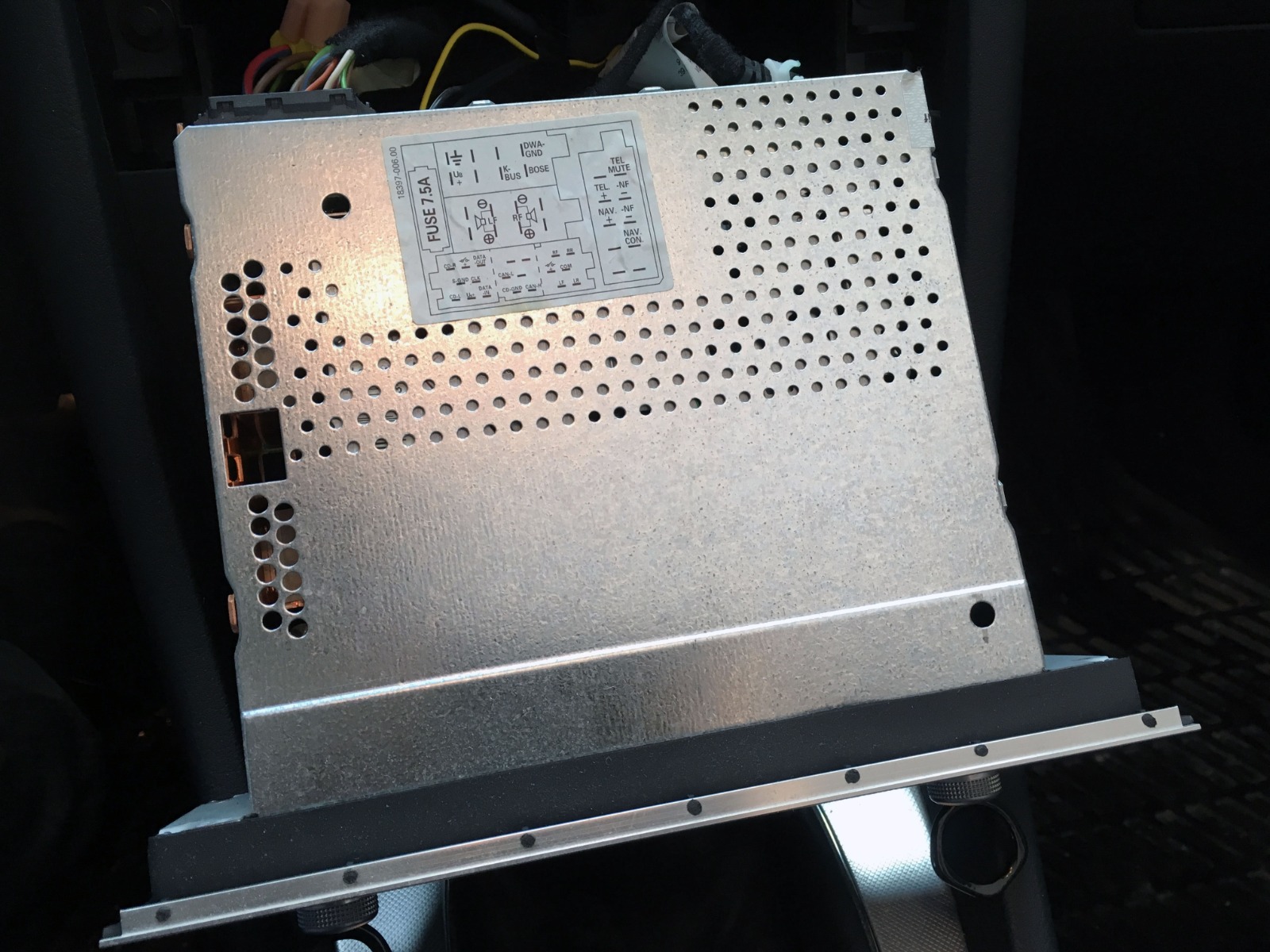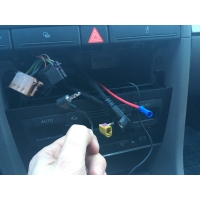 - Dette blir kursen for tenningsttrømmen til den nye radioen. Den originale radioen tennes ved hjelp av CAN-BUS/digitale signaler. Den nye ettermarkedsradioen trenger 12V tenningsstrøm. Sikringsuttaket kobles i HELT TIL SLUTT. Bildet illustrerer bare hvor den normalt kan plasseres.