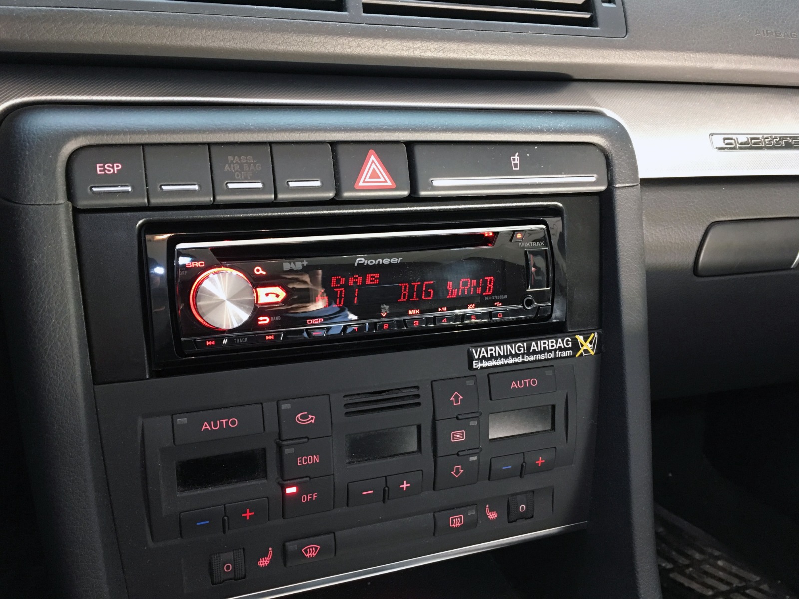 - Løsne sidepanel for å trekke kabel inn mot radio-lomme. Det anbefales også her å løsne hanskerom med pipenøkkel str. 8