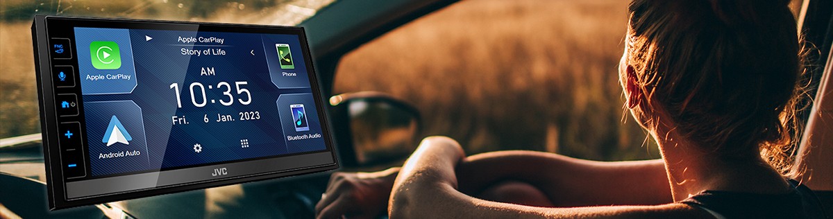 Nyt favoritt musikken hver gang du er ute å kjører. Med KW-DB95BT kan du ha 2 telefoner tilkoblet til en hver tid, strømme musikk fra 5 telefoner med «JVC Streaming DJ», lytte til støyfrie DAB kanaler eller rett og slett lytte til favoritt musikken fra CD plate eller USB tilkoblingen i fronten. KW-DB95BT støtter Spotify App Link, har hele 1,5A ladestrøm i USB kontakten, slik at du raskt kan lade din smarttelefon. I tillegg til innebygget handsfree kan du strømme musikk trådløst fra telefonen…