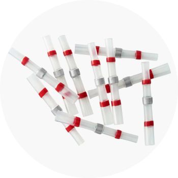 Profesjonelle skjøtehylser med krympestrømpe og tinn for en trygg og vanntett skjøt. Plasthylsen er av gjennomsiktig krympeplast med varmesmeltende lim i begge ender. I midten av hylsen ligger en ring med loddetinn og fluks.