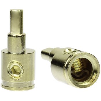 C13010 er en overgangsterminal som gjør at man kan feste 35mm2 kabler i en 10mm2 inngang på en forsterker, distribusjonsblokk etc. Selges pr. stk.