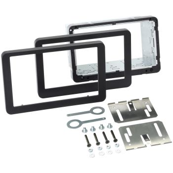 1-DIN radioadapter for å bygge om interiøret i en en spesifikk bilmodell til standard DIN-hull slik at man kan montere valgfri ettermarkedsradio i samme størrelse istedenfor den originalmonterte radioen.