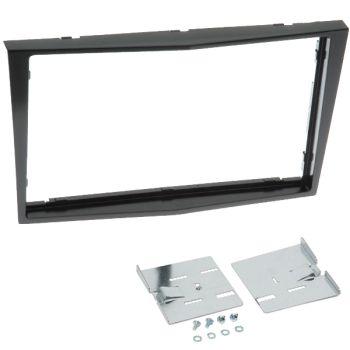 2-DIN radioadapter for å bygge om interiøret i en spesifikk bilmodell til standard DIN-hull slik at man kan montere en valgfri ettermarkedsradio i samme størrelse istedenfor den originalmonterte radioen.