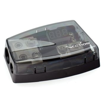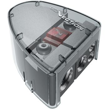 Kraftig batteriterminal i Connections toppserie, Sonus. Dekselet er produsert i eksklusiv ripefri og kraftig polykarbonat termoplast mens de kraftige tilkoblingene er produsert i messing. Seraterte skruer sørger for god kontakt og innfesting av strømkablene. Tilkoblinger: 1x53mm2, 1x25mm2, 2x10mm2.